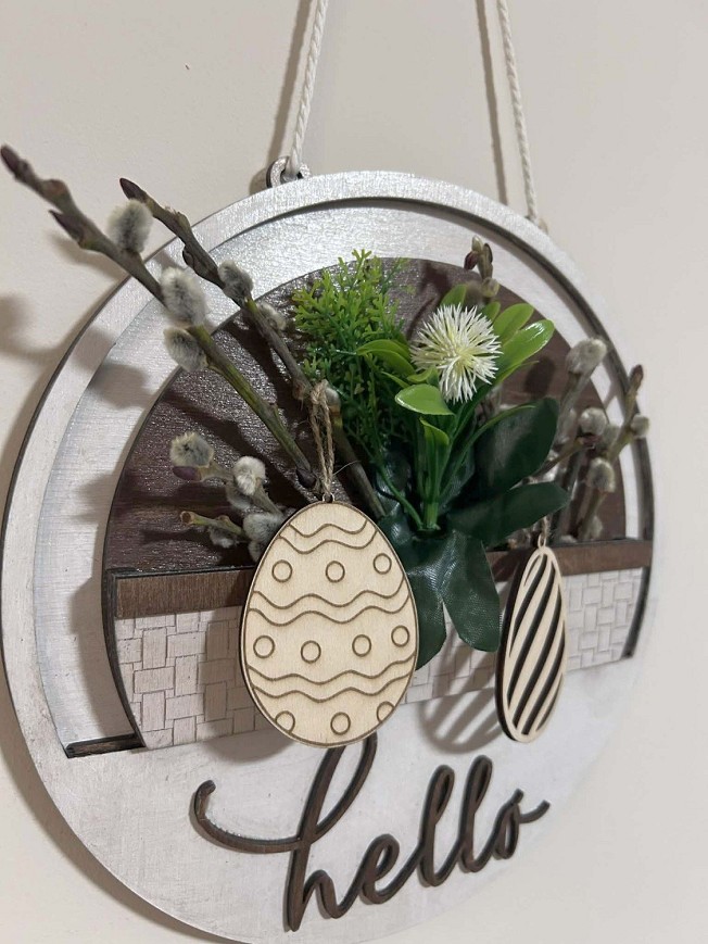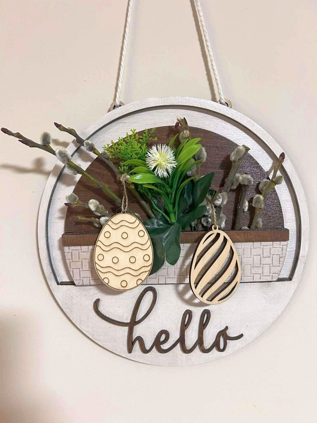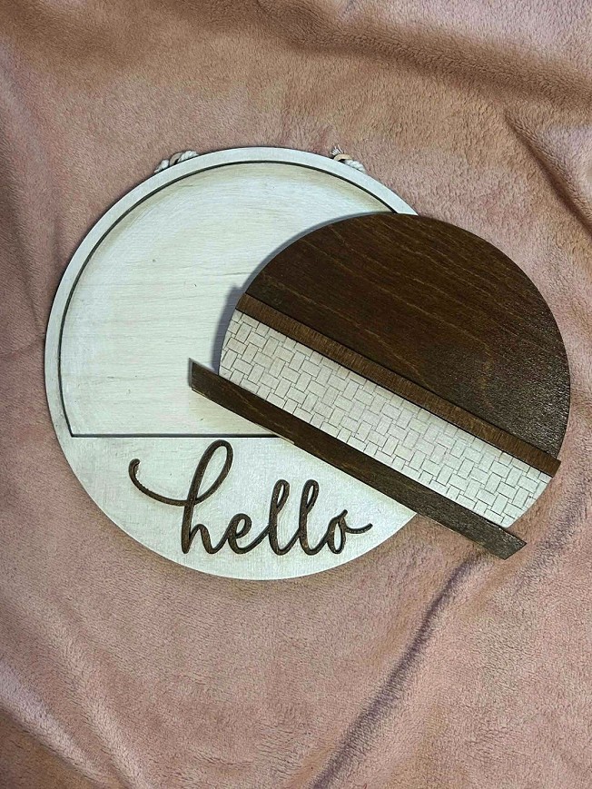 Ez a különleges, rétegelt fából készült ajtódísz nem csak egy dekoráció, hanem egy egész évben használható ajtódísz alap. A dísz cserélhető betéttel készült, így évszakonként vagy ünnepenként új betéttel teljesen megváltoztatható a megjelenése.