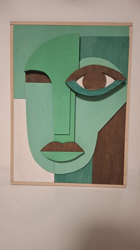 Ez a kézzel festett, modern geometrikus arc falikép erős vizuális fókuszpontként működik bármely térben. A rétegezett formák és a zöld árnyalatok nyugodt, mégis karakteres hangulatot teremtenek. A kompozíció egyszerre minimalista és művészi, így jól illik kortárs, skandináv vagy kreatív enteriőrbe is.