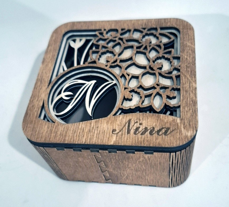 Ez az elegáns, fából készült ékszerdoboz tökéletes választás azoknak, akik valóban egyedi ajándékot keresnek. A precízen lézergravírozott monogram és név teljes mértékben személyre szabható, így az ékszerdoboz nemcsak praktikus tároló, hanem maradandó emlék is.
